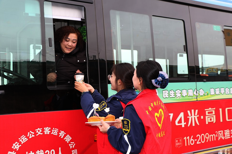 3月7日,中铁交通中铁静兴高速开展暖心活动,将一份份奶茶与糕点送到过往女司乘手中,并热情邀请她们进站共庆“三八”国际妇女节。多位女司乘在惊喜中步入驿站,现场欢声笑语,暖意融融。