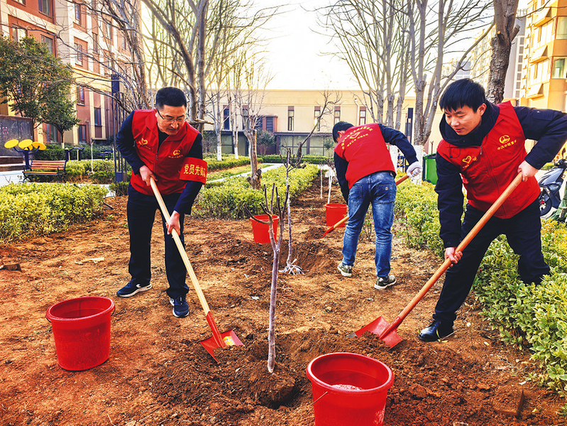 中铁置业山东公司济南项目组织党员和员工代表参与志愿植树活动,赋能社区生态建设。