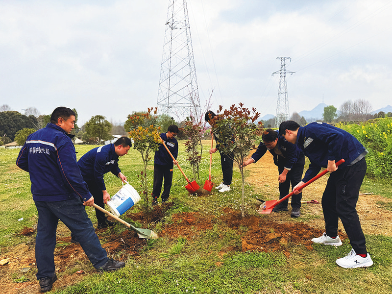 中铁上海局城建分公司泉州白濑项目部与白濑乡党委、政府联合开展义务植树活动,为建设生态优美、宜居宜业的美丽乡村贡献央企力量。